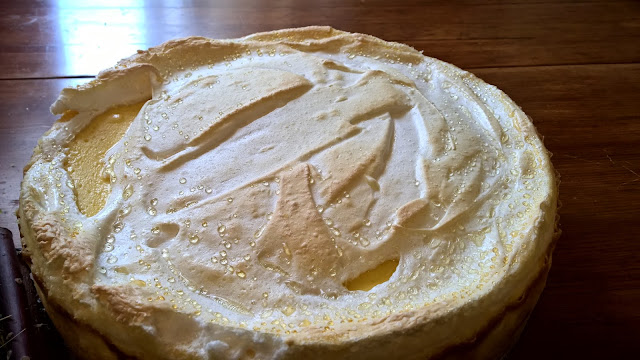 Chwilę przed upływem czasu, z białek pozostałych z ciasta spodniego, ubić pianę dodając 1/2 szklanki cukru pozostałego z masy serowej i ubić na sztywno. Kiedy ciasto jest upieczone, wyłożyć pianę na wierzch sernika i piec jeszcze około 10-12 minut. Przez te 12 minut należy ciasto cały czas obserwować. Jeśli piana na górze sernika zbyt mocno się spiecze, po ostygnięciu nie wyjdą „kropelki rosy”.